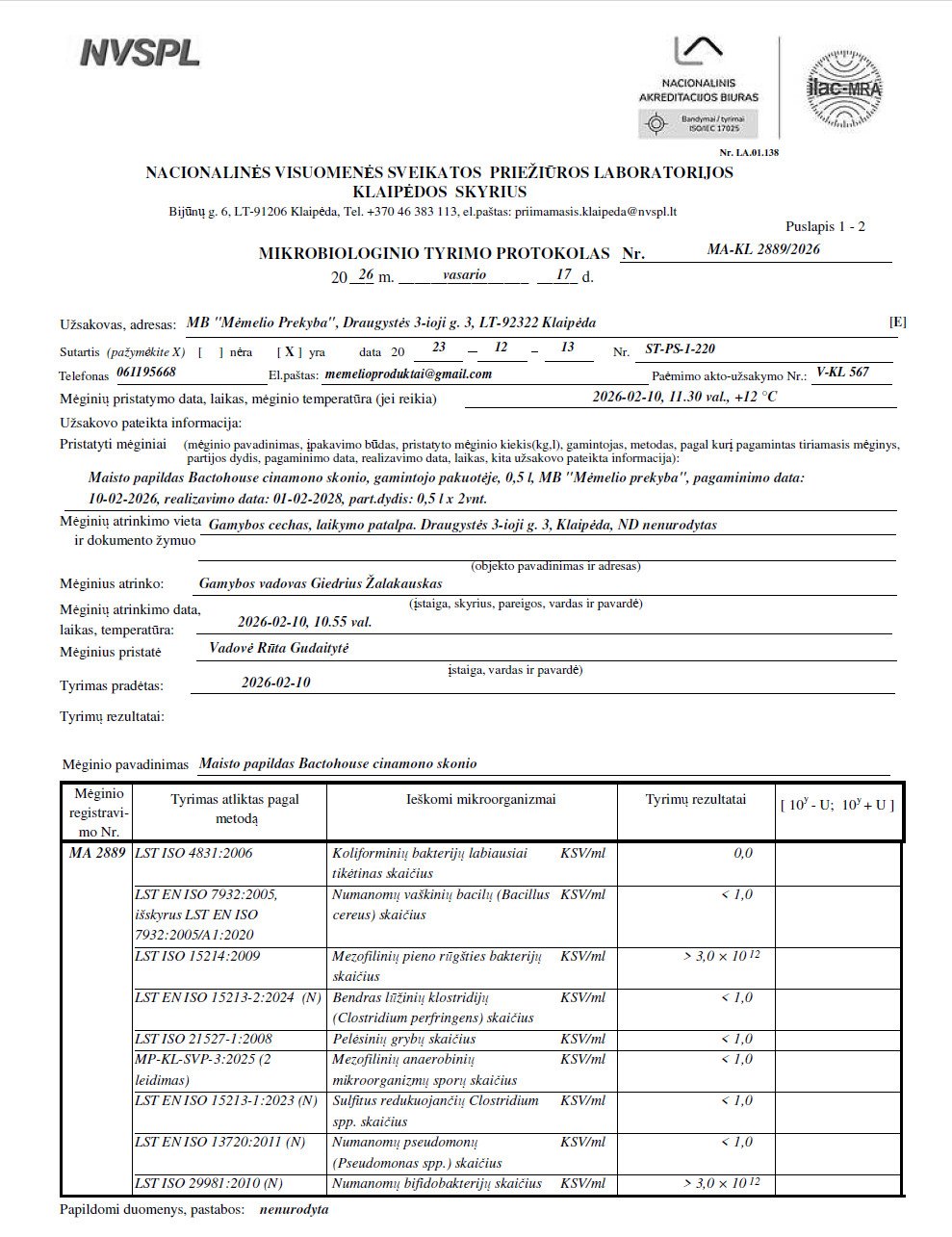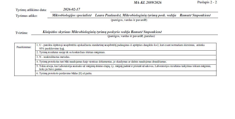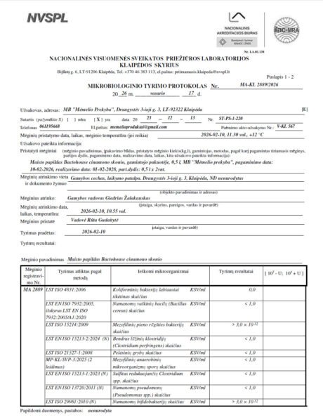 Mėmelio Fermentuotas produktų tyrimų protokolai
